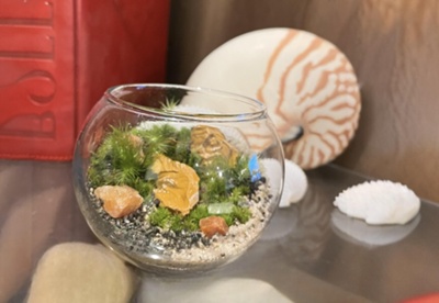 ガラスの中の小さな風景。苔の呼吸が聞こえてきそうな静かな世界を作ってみませんか?一年中しっとりとした苔が心を癒してくれます。