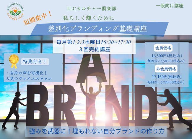 似たような商品やサービスがあふれる中で、あなたの仕事や活動を「埋もれない存在」にするためのブランディング講座です。