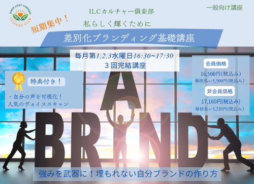 会員価格:月額 3,300円(税込)※カルチャー倶楽部会費月300円ですべての講座が会員価格で受講可能