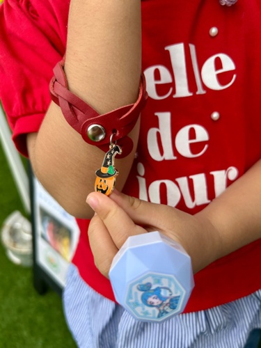 👧💕 最初の可愛いお客様は、赤いブレスレットにハロウィンチャームを選んでくれて、